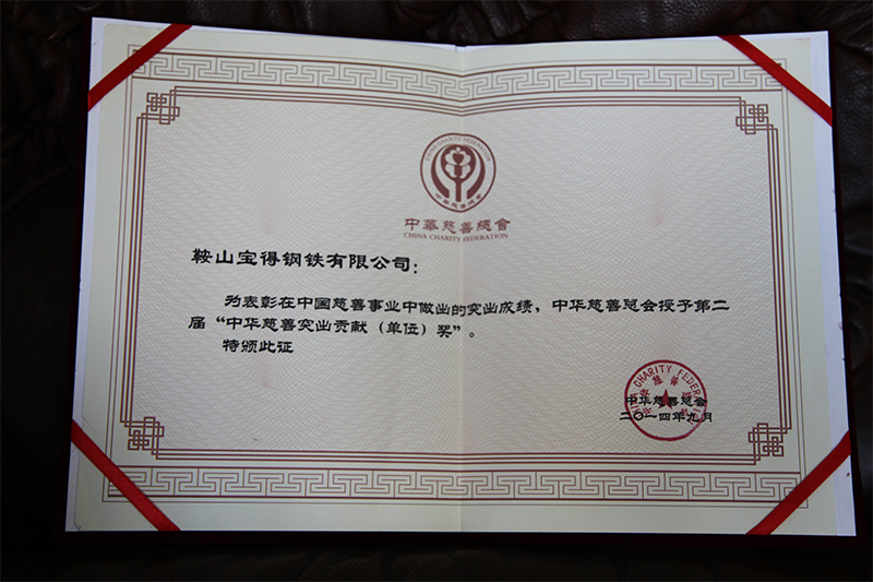 為表彰在中國慈善事業(yè)中作出的突出貢獻(xiàn),中華慈善總會(huì)授予公司第二屆“中華慈善突出貢獻(xiàn)(單位)獎(jiǎng)”。5月20日,副市長陳守義、市民政局局長解永浮、副局長龔毅濤及市慈善總會(huì)領(lǐng)導(dǎo)到公司頒獎(jiǎng),董事長、總經(jīng)理接受頒獎(jiǎng)。